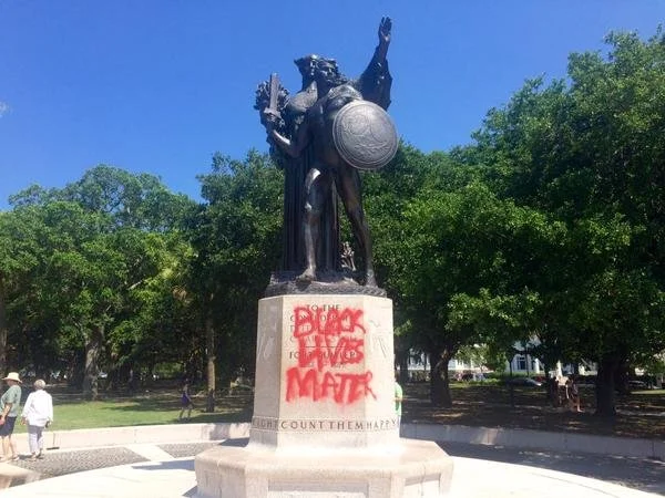 Springing from that same renewed debate, and further situating Newsome's protest, is the wave of graffiti that has been visited on Confederate statues and memorials all across the United States. We here at Red Wedge categorically reject labeling these acts "vandalism," as many media outlets have. This rejection isn't just predicated on some sneering attitude toward the memory of the Confederacy, though we certainly do look at a state that seceded with the expressed intent of preserving slavery with deserved disdain. And yes, slavery was, beyond any reasonable contradiction, the central reason for the South's secession and the subsequent Civil War.
